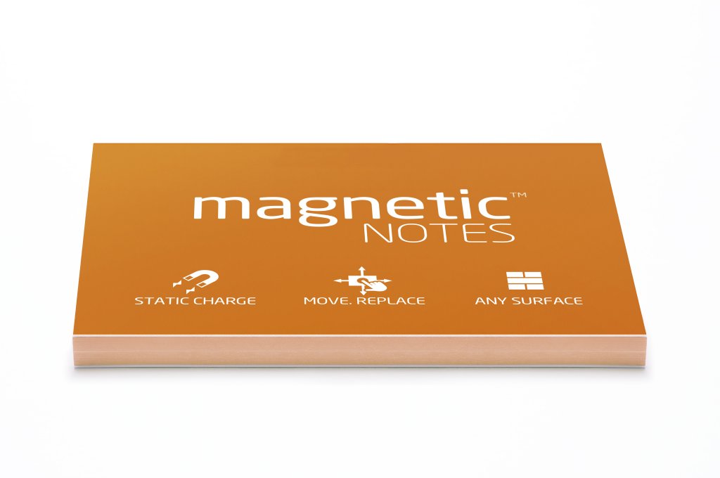 Magnetic NOTES to pomoc biurowa na miarę XXI wieku. Innowacyjna, opatentowana technologia wykorzystuje fizyczne zjawisko oddziaływania elektrostatycznego pomiędzy ładunkami, które pozwala na przyleganie karteczek do wielu powierzchni bez użycia kleju, pinezek czy taśm.