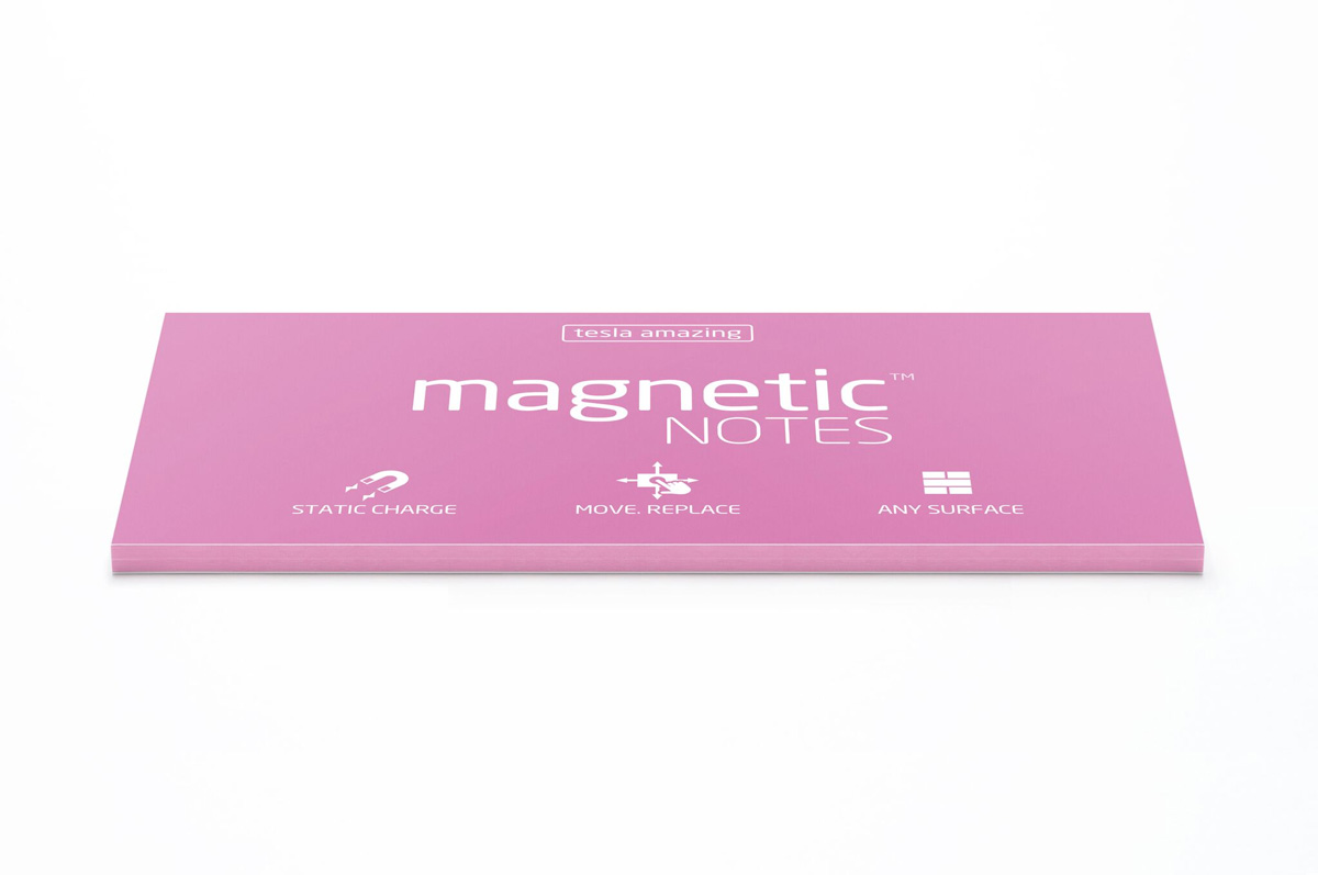 Magnetic NOTES to pomoc biurowa na miarę XXI wieku. Innowacyjna, opatentowana technologia wykorzystuje fizyczne zjawisko oddziaływania elektrostatycznego pomiędzy ładunkami, które pozwala na przyleganie karteczek do wielu powierzchni bez użycia kleju, pinezek czy taśm.