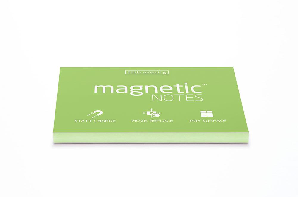 Magnetic NOTES to pomoc biurowa na miarę XXI wieku. Innowacyjna, opatentowana technologia wykorzystuje fizyczne zjawisko oddziaływania elektrostatycznego pomiędzy ładunkami, które pozwala na przyleganie karteczek do wielu powierzchni bez użycia kleju, pinezek czy taśm.