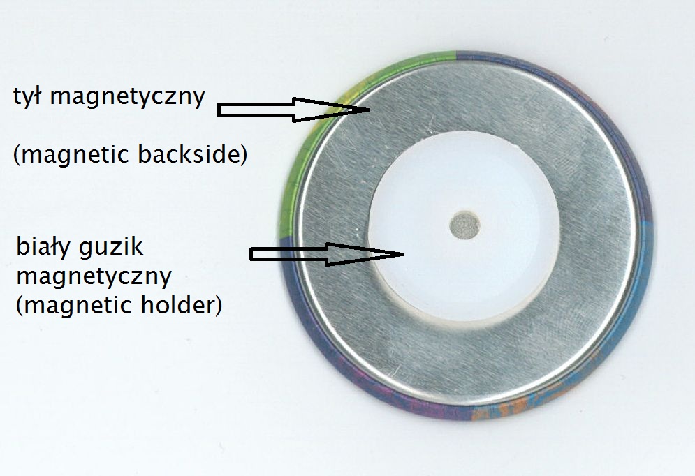 • magnes do umieszczenia pod ubraniem, który przyciąga tylną blaszkę