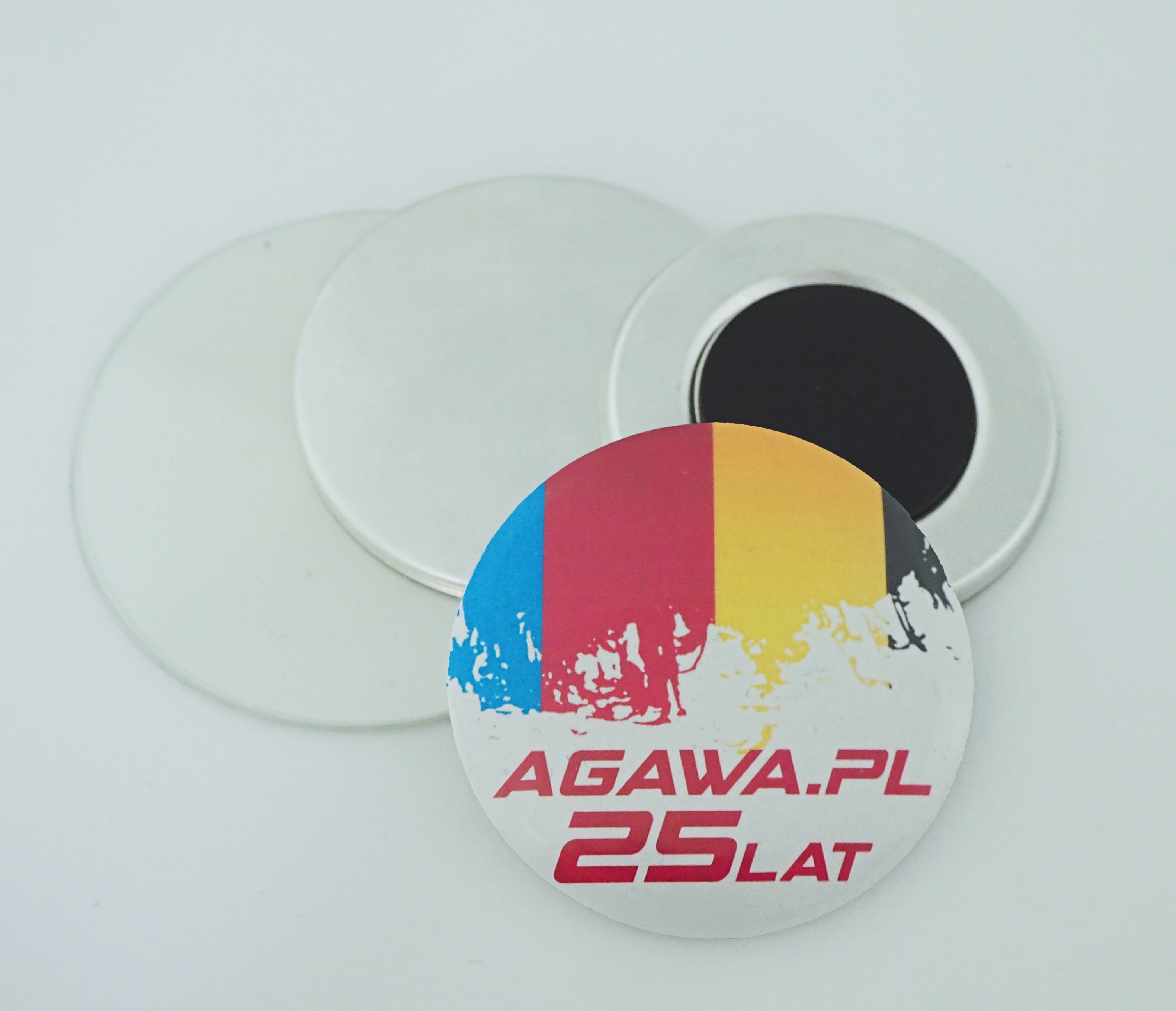 Z tyłu przypinka posiada folię magnetyczną, dzięki której badzik to oryginalny magnes na lodówkę. Przypinka z magnesem z własną grafiką bez trudu przylega też do innych metalowych podłoży.