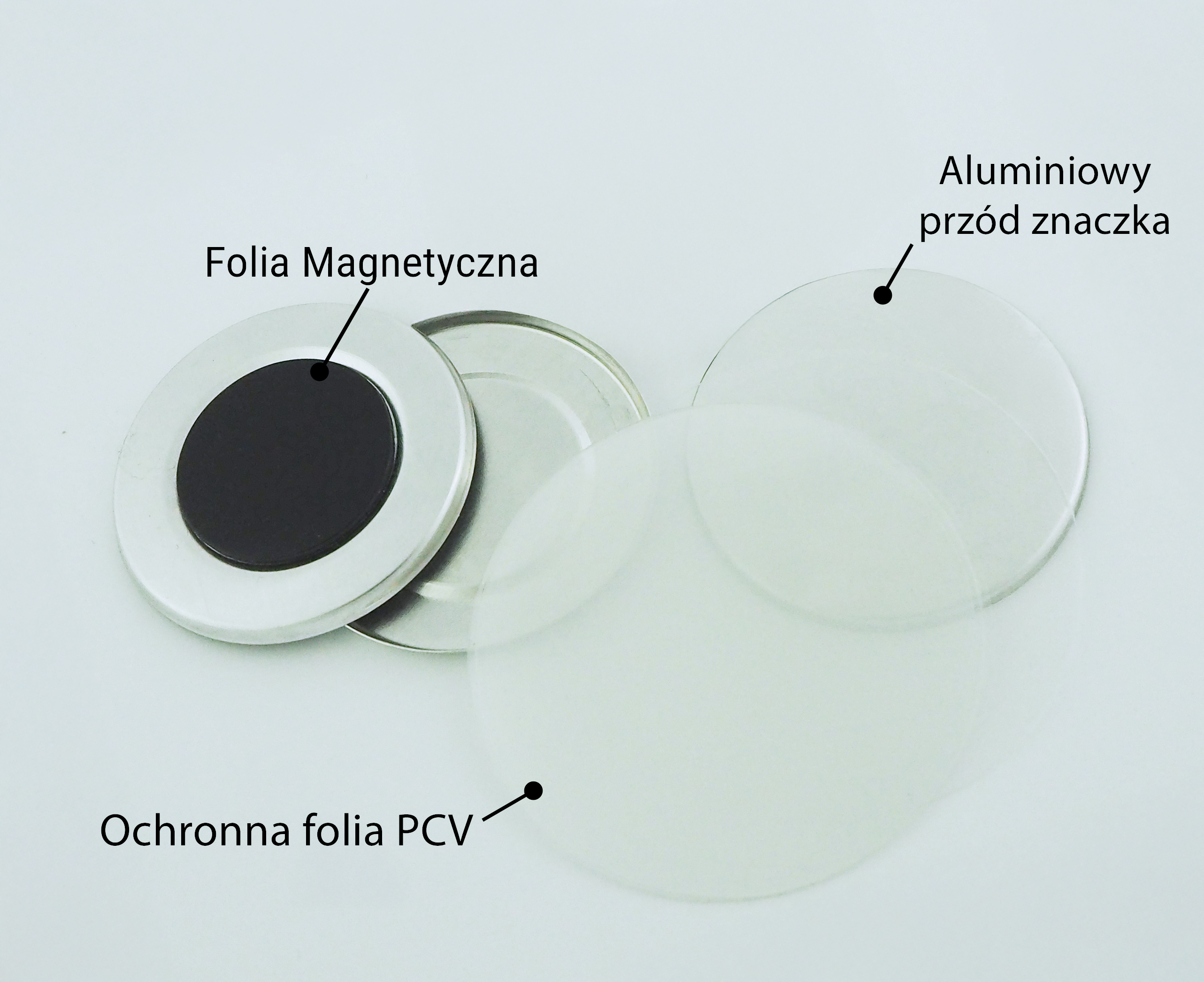 Zestaw zawiera wszelkie elementy potrzebne do złożenia znaczka. Papierowy wzór graficzny przypinki przygotowuje się samodzielnie (może to być logo, nazwa, inna grafika).