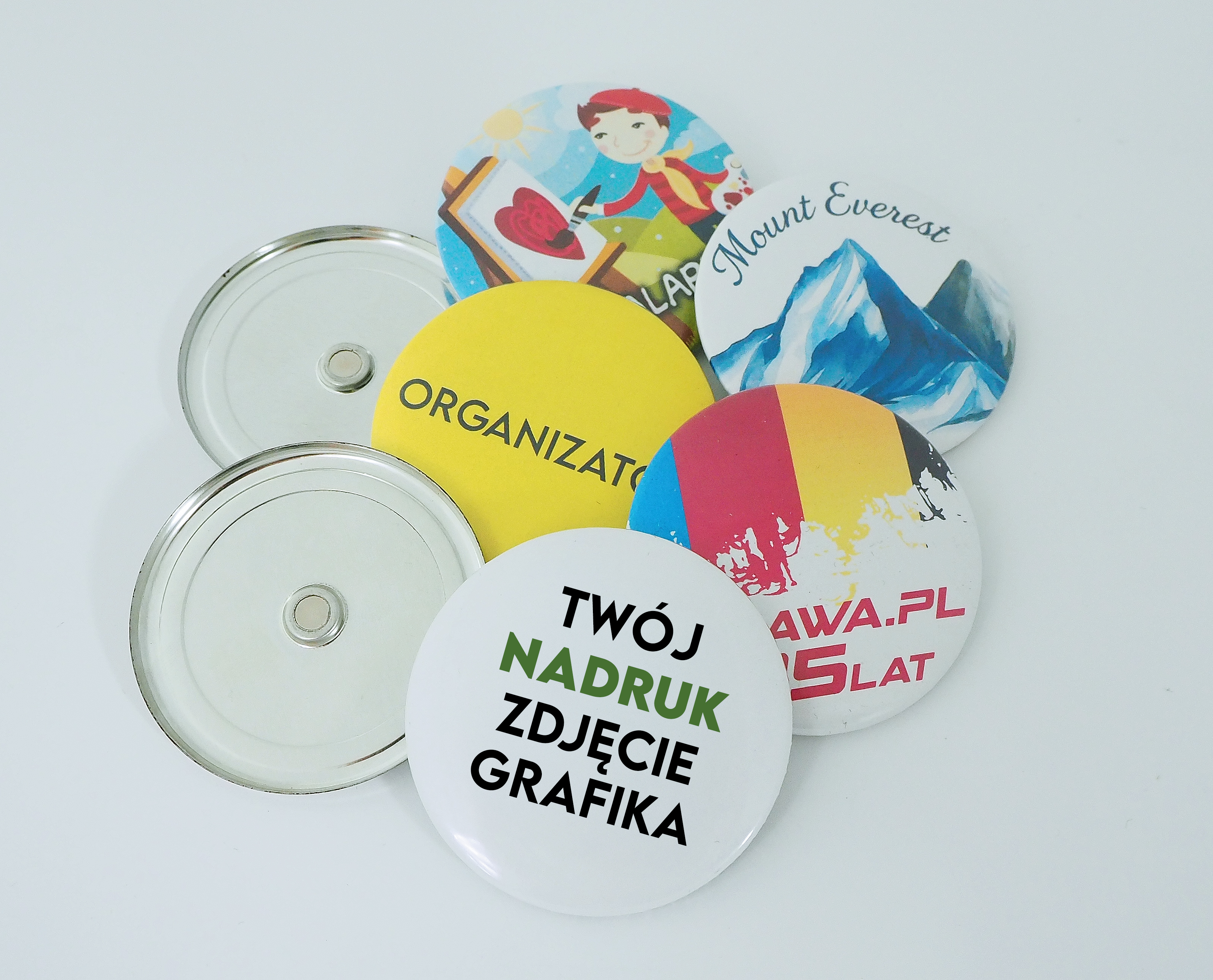 Aluminiowe przypinki (znaczki, badziki) z magnesem to bardzo popularny gadżet reklamowy. Firmy wykorzystują buttony w kampaniach reklamowych, do budowania pozytywnego wizerunku lub przy okazji wprowadzania na rynek nowego produktu. Plakietka przypięta na metalowe powierzchnie skutecznie zwraca uwagę. Badzik stanowi również ciekawy detal na pamiątkę różnego rodzaju wydarzeń (zjazd, studniówka, wesele, imprezy sportowe i kulturalne).