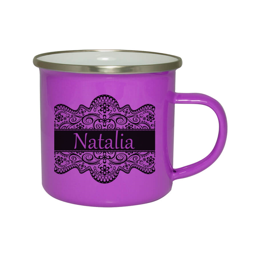 • Stalowy kubek pod nadruk w stylu retro jest wykonany z wytrzymałej blachy, a następnie pokryty warstwą higienicznej emalii