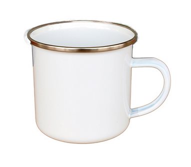 • Stalowy kubek pod nadruk w stylu retro jest wykonany z wytrzymałej blachy, a następnie pokryty warstwą higienicznej emalii