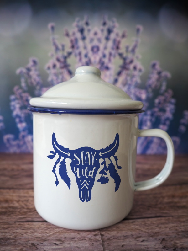 • Stalowy kubek pod nadruk w stylu retro jest wykonany z wytrzymałej blachy, a następnie pokryty warstwą higienicznej emalii