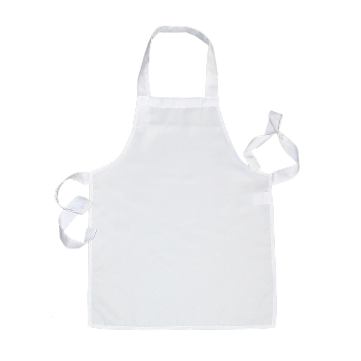 • Wykonany z poliestru gładki, biały fartuszek dziecięcy nadaje się do personalizacji metodą sublimacji