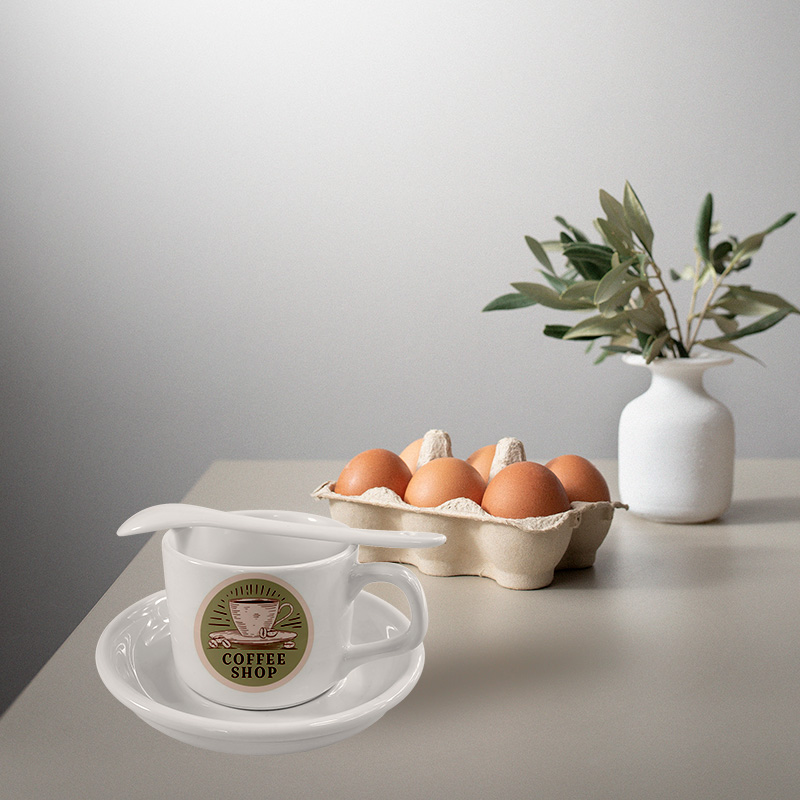 • Niewielka filiżanka z talerzykiem pod nadruk jest kształtna i elegancka, najlepiej sprawdzi się w salonach fryzjerskich i kosmetycznych, hotelach, reaturacjach, bankach, sklepach i innych placówkach, gdzie klient może zostać poczęstowany pyszną małą kawą w firmowym kubeczku