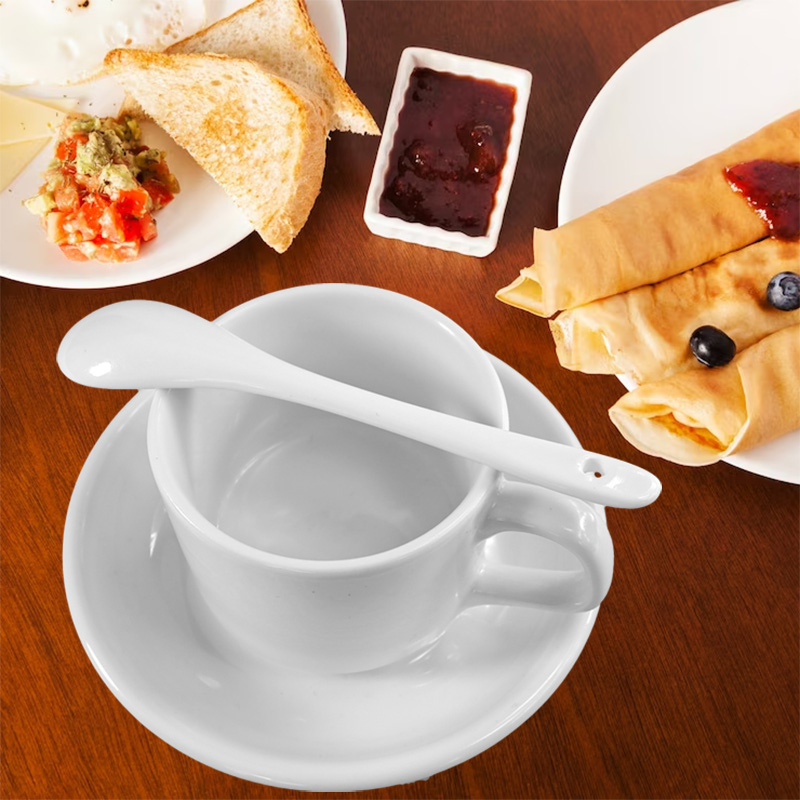 • Błyszcząca biała filiżanka do sublimacji z łyżeczką oraz spodkiem