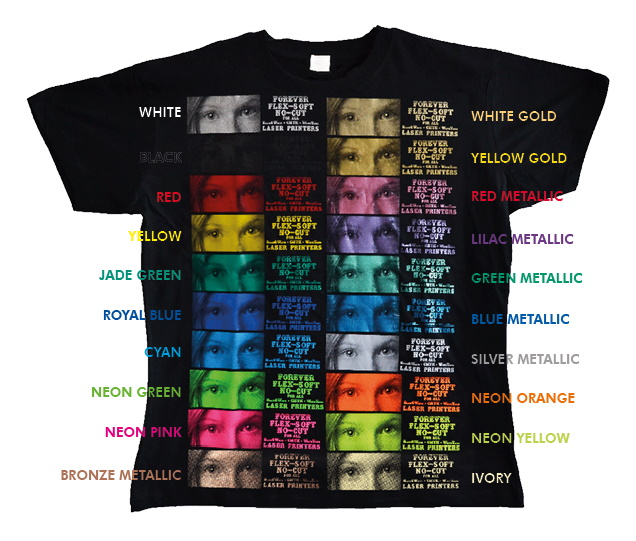 • Sprawdź inne kolory Folii Flex Soft No-Cut do druku laserowego, również w efektownych kolorach metalicznych i neonowych