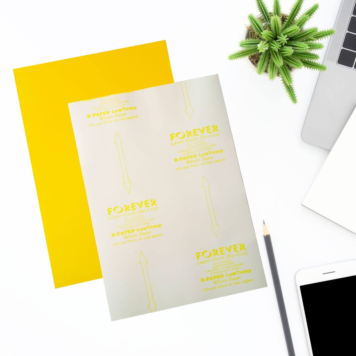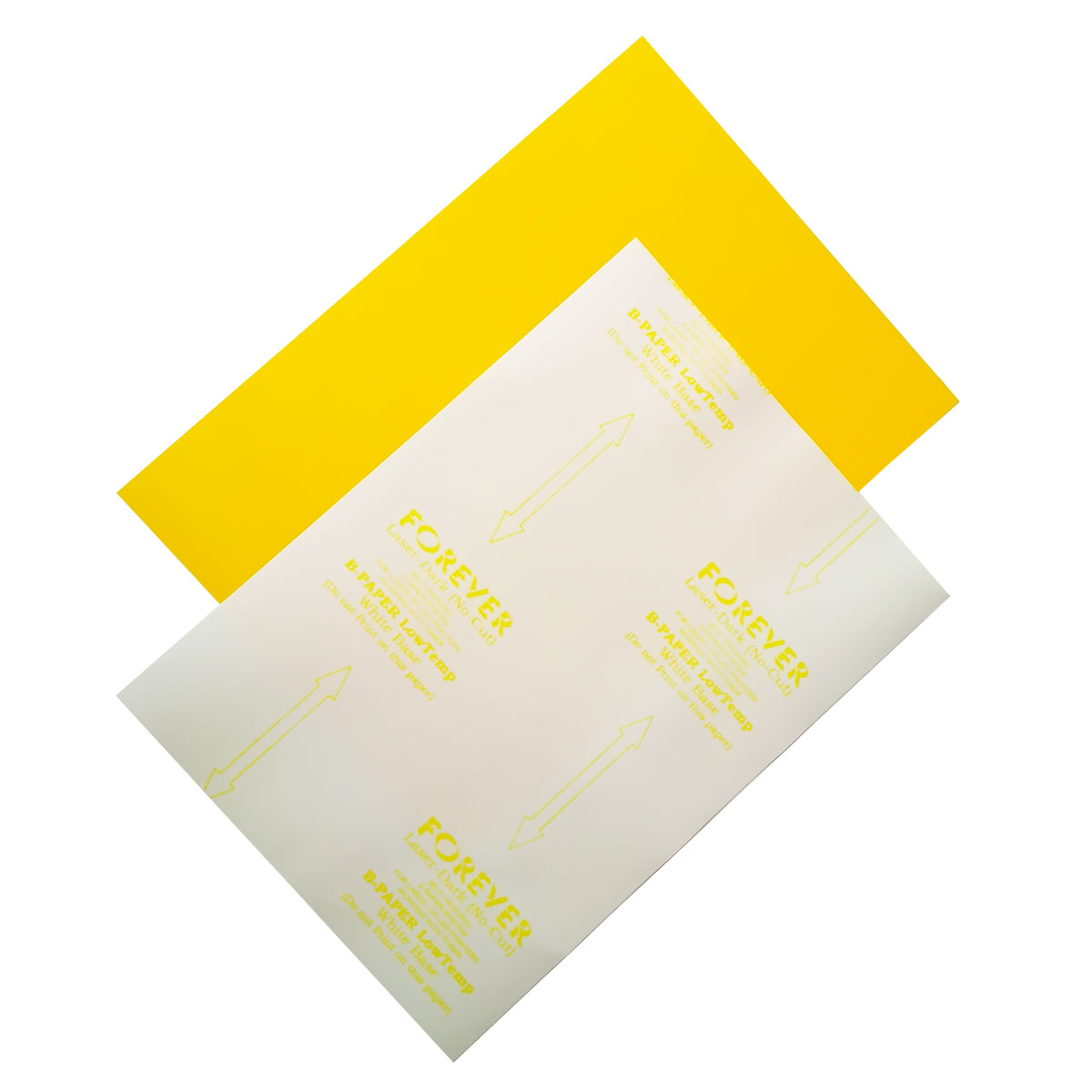 • Ułóż na płycie prasy zadrukowaną folię wydrukiem do góry, a na niej umieść papier z klejem (B-Paper) oznaczeniami producenta do góry
