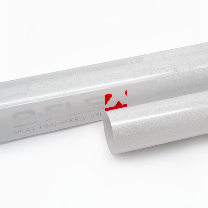 • Piaskowa, brokatowa folia kraftowa B-FLEX jest jednostronnie powleczona silnym klejem (klej jest aktywowany termicznie - pod wpływem ciepła prasy transferowej)