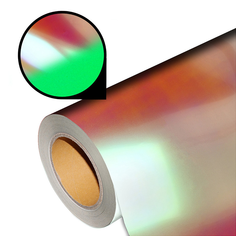 • termotransferowa folia flex odbija światło niczym lustro, opalizuje wieloma kolorami, przechodzi z jednej barwy w inną