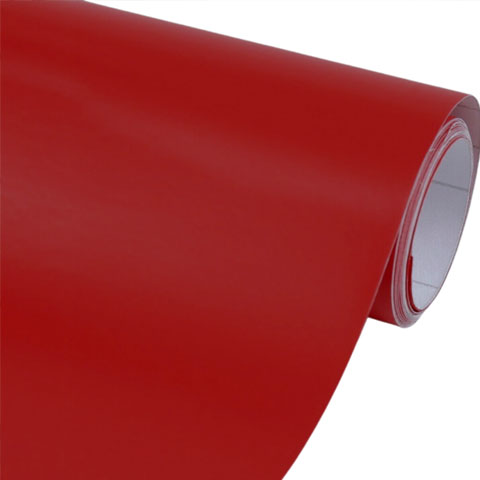 Czewrona folia samoprzylepna ma głęboko matowe wykończenie, a strukturą przypomina w dotyku silikon.