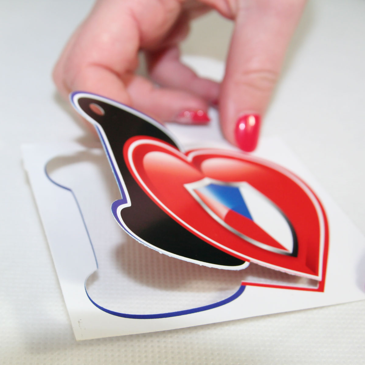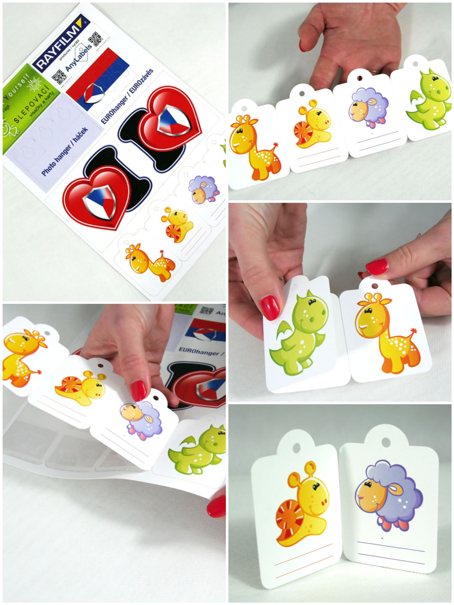 • Przy pomocy papieru z klejem łatwo stworzyć własne naklejki: etykiety na butelki (np. na wódkę weselną), nalepki na opakowania produktów ze składem czy danymi technicznymi, oryginalne naklejki na laptopa, meble, drzwi, lodówkę itd.