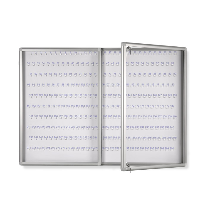 • Drzwi szafki na klucze wykonane z bezpiecznego akrylowego szkła, otwierane na bok, zamykane na klucz (do zamka dwa klucze w zestawie)