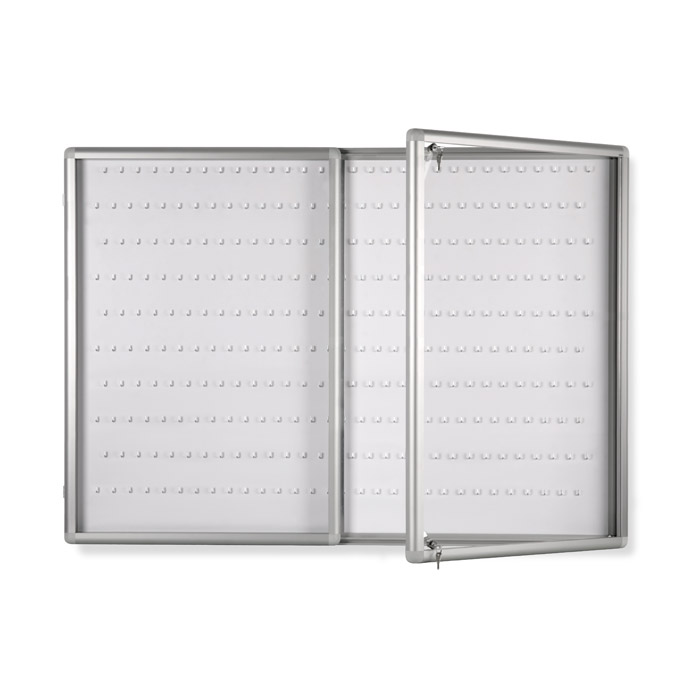 • Witryna na klucze stworzona z wytrzymałych profili aluminiowych, anodowanych na srebrno.