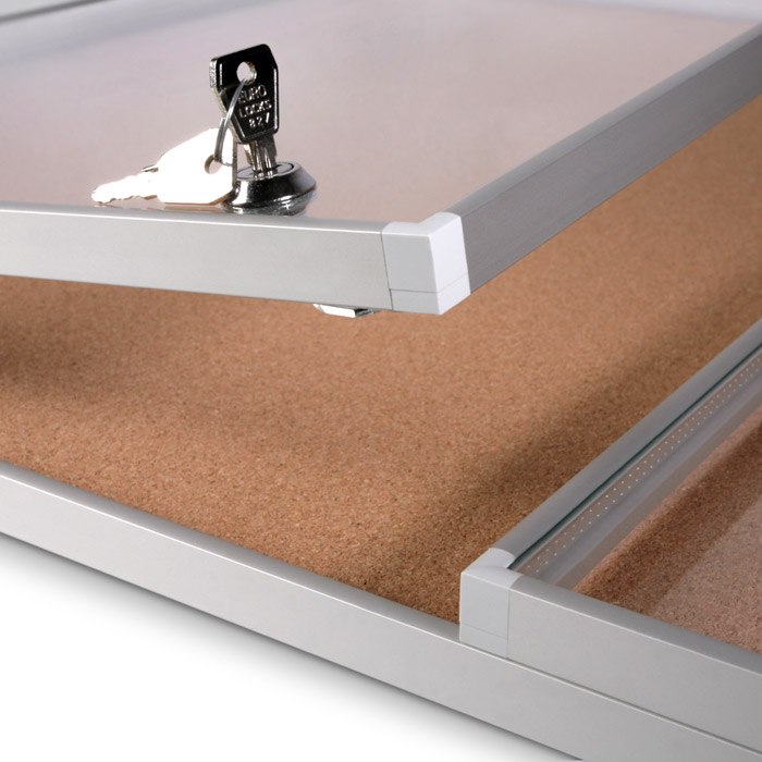 • Wnętrze z korkowym podłożem (gablota dostępna także w wariancie z powierzchnią magnetyczną)