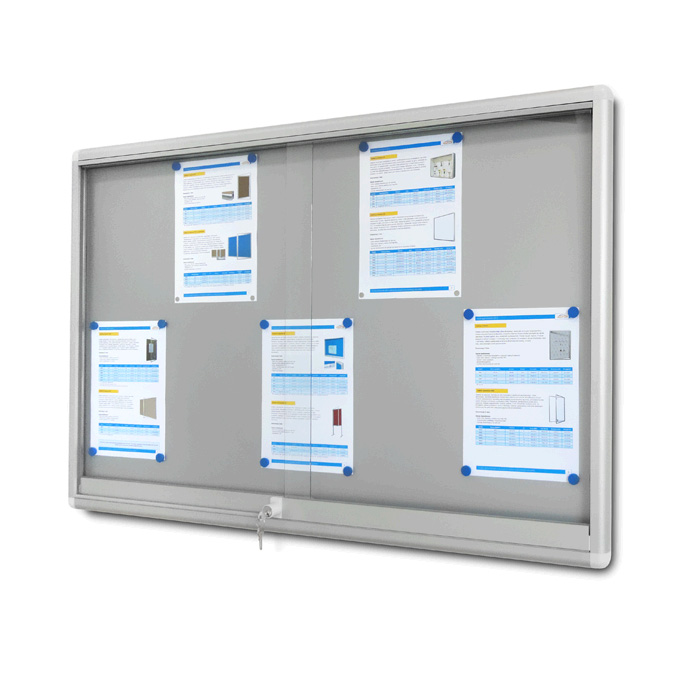 Gabloty wewnętrzne to najlepszy sposób na prezentację treści. Stojące czy wiszące gabloty przedstawiają informacje dla potencjalnych klientów i gości: cennik, rozkład jazdy, ogłoszenia, plan zajęć. Aluminiowe witryny z ogłoszeniami wypierają witryny drewniane ze względu na nowoczesny design i trwałość. Dzięki swojej uniwersalności gablotki reklamowe i informacyjne doskonale sprawdzają się w każdym miejscu: w urzędzie, biurze, szkole, kościele, firmie czy na klatce schodowej.