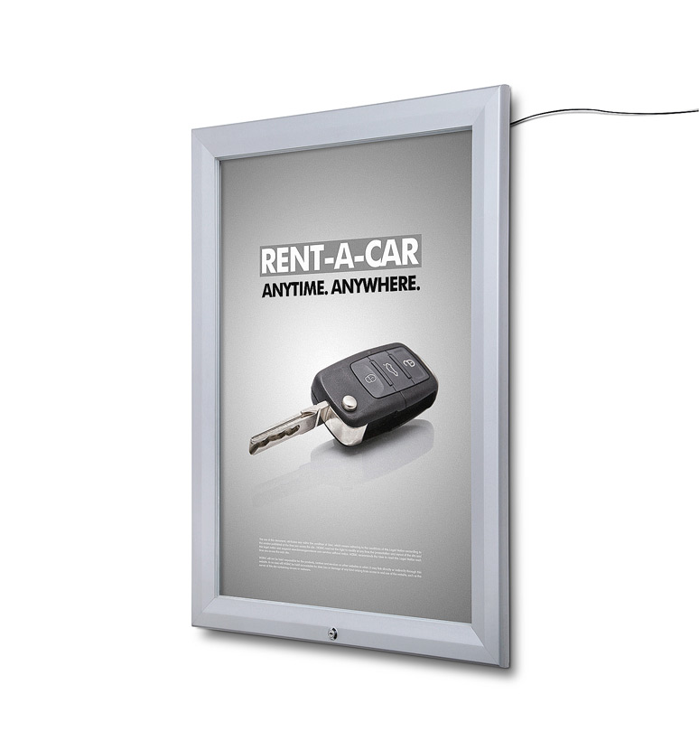 • Gablota ogłoszeniowa na plakat z podświetleniem LED z certyfikatem IP54.