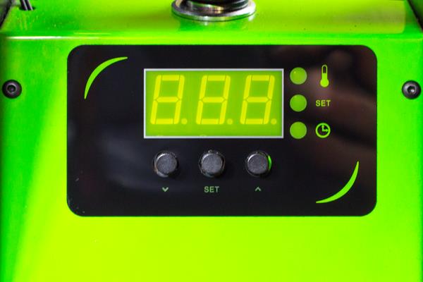 • Panel sterowania prasy posiada wyświetlacz cyfrowy, sterowanie jest intuicyjne, czas i temperaturę ustawiamy zaledwie w 2 krokach