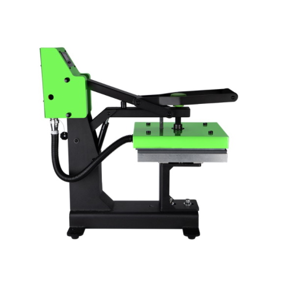 • Dzięki umiejscowieniu dolnej płyty na słupku, z łatwością można wykonać nadruk na trudno dostępnych miejscach, np. na rękawach koszul, kurtek, na torbach oraz na boku lub tyle czapki