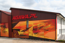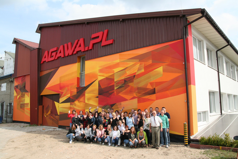 Mural na fasadzie AGAWA.PL ma powierzchnię około 180 m2. Do jego realizacji użyte zostały farby akrylowe oraz spraye. Stworzony obraz to połączenie graffiti i abstrakcjonizmu. Jadąc ulicą Milenijną na pewno każdy zwróci uwagę na "nowoczesność i unikalność" fasady budynku.