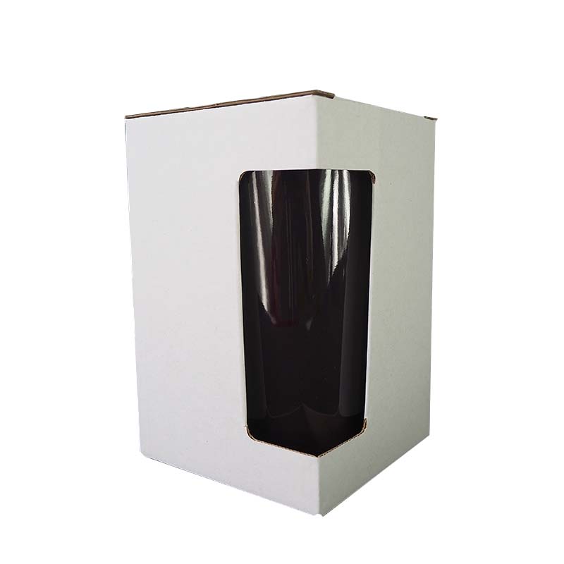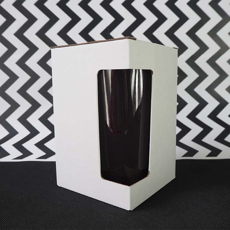 • Pudełko z okienkiem na pojedynczy kubek reklamowy o wymiarach 10,5 x 10,5 x 15,5 cm