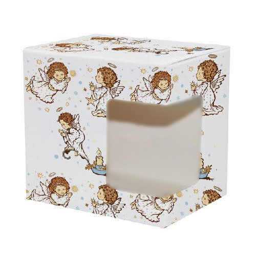 • Pudełko z okienkiem na pojedynczy kubek reklamowy o wymiarach 11 x 9 x 9 cm