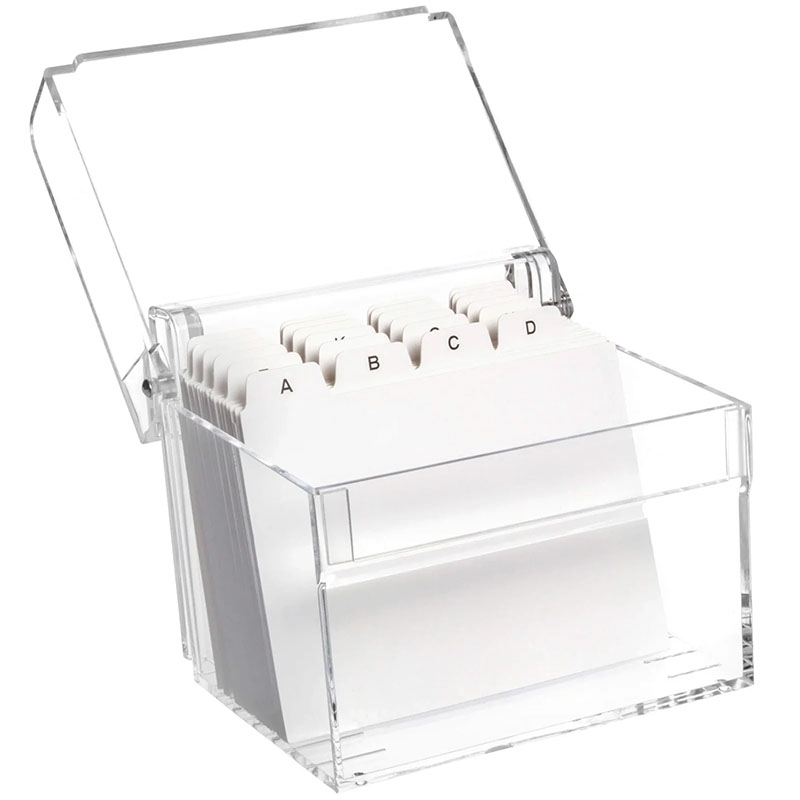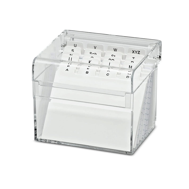 • Wysokiej jakości stabilna akrylowa kartoteka z wieczkiem jest transparentna - prezentuje się bardzo elegancko i nowocześnie