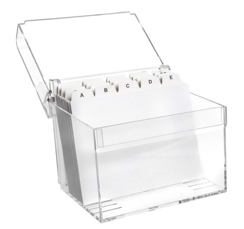 • Wysokiej jakości stabilna akrylowa kartoteka z wieczkiem jest transparentna - prezentuje się bardzo elegancko i nowocześnie