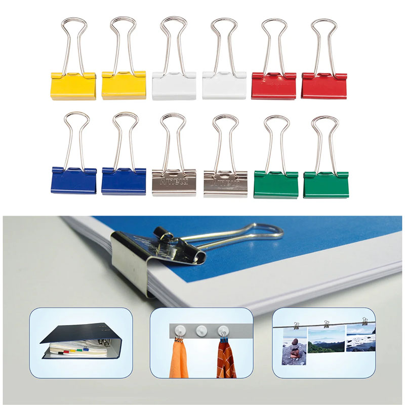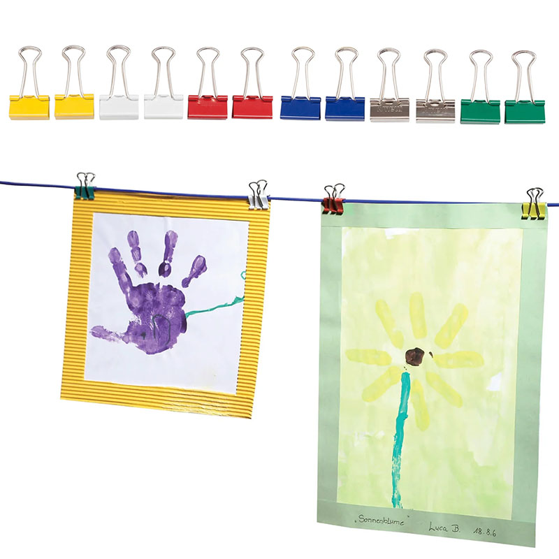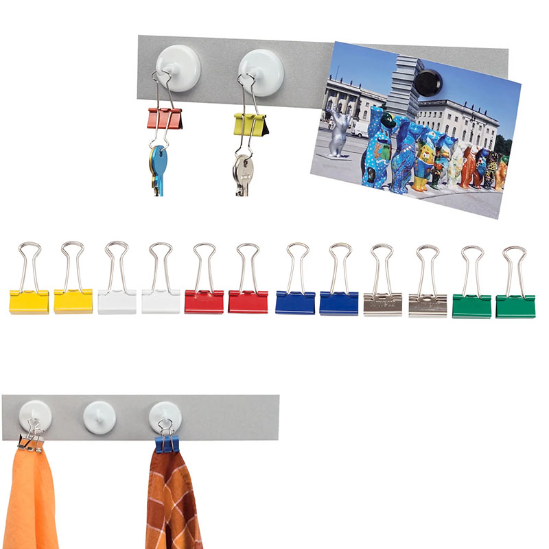 • W komplecie znajduje się 12 klipów w różnych kolorach: 2 białe, 2 czerwone, 2 niebieskie, 2 żółte, 2 zielone, 2 czarne, 2 srebrne