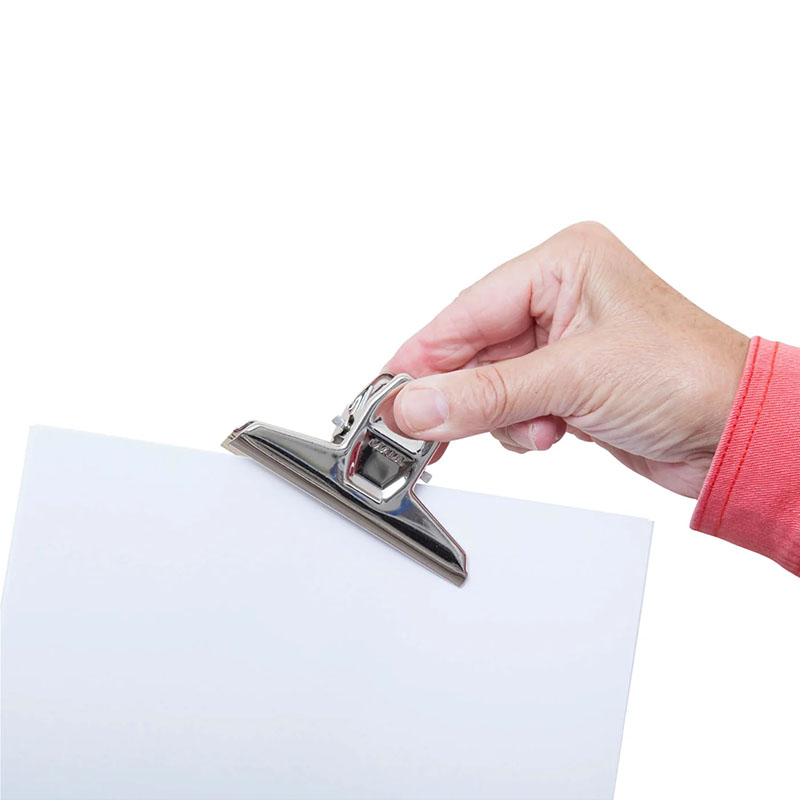 • Wykonany ze stali klip zaciskowy do spięcia plików dokumentów, notatek, listów