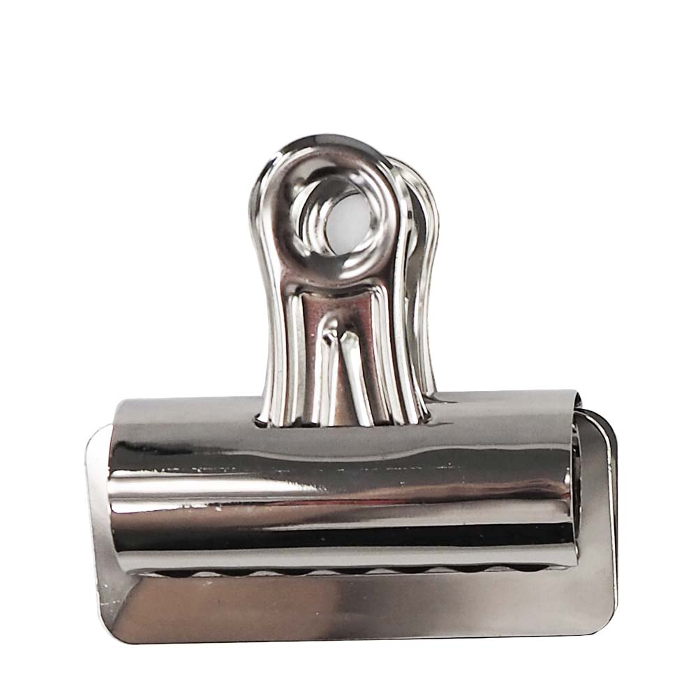 • Srebrny wykonany z metalu klips o długości 7,5 cm do spięcia plików dokumentów, notatek, listów