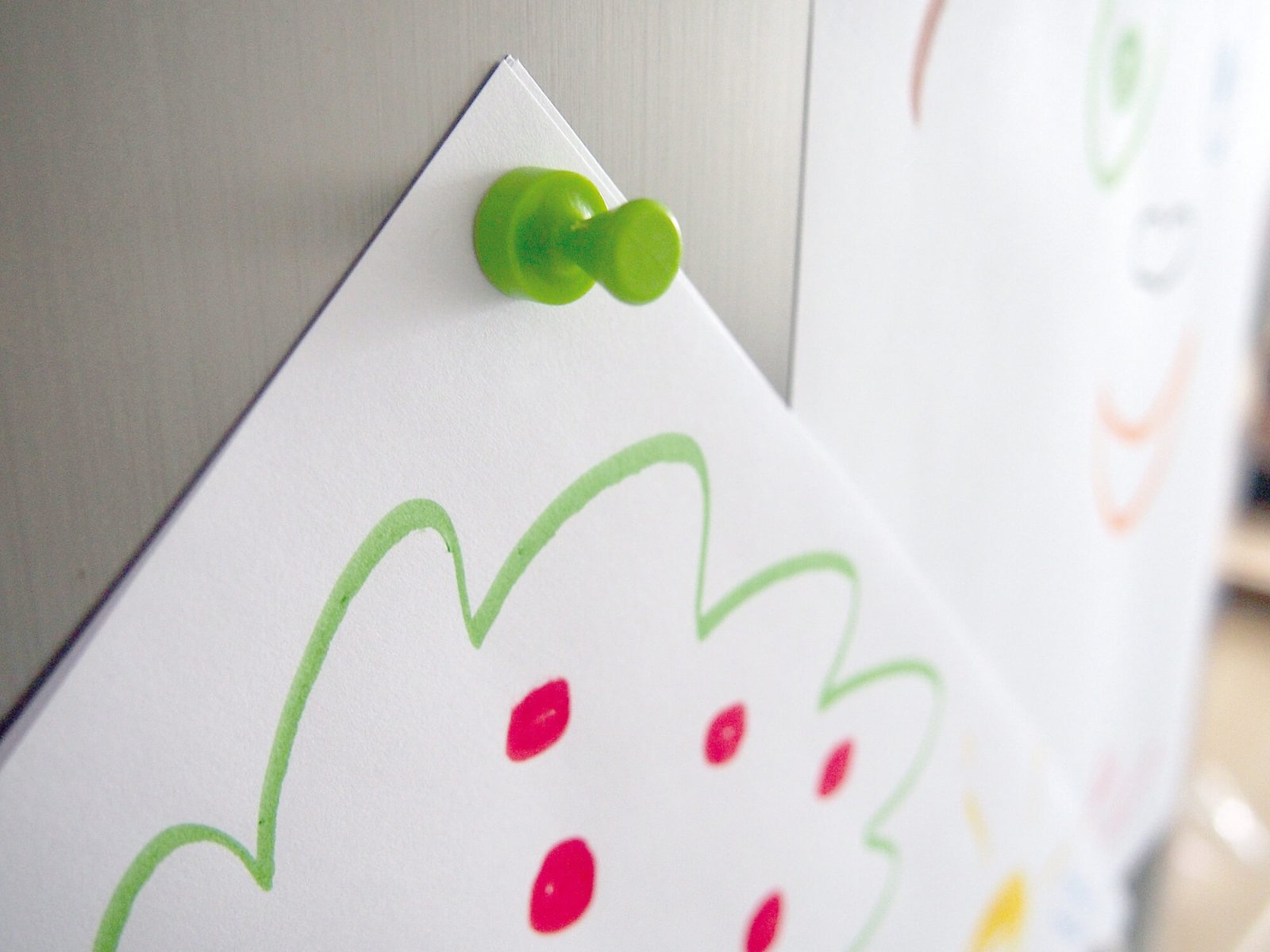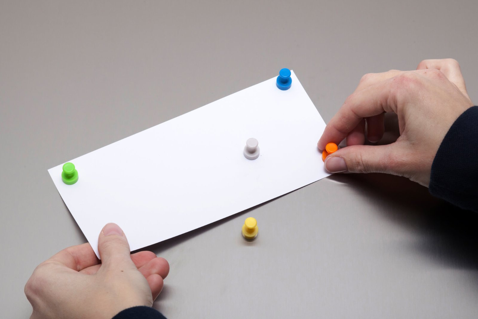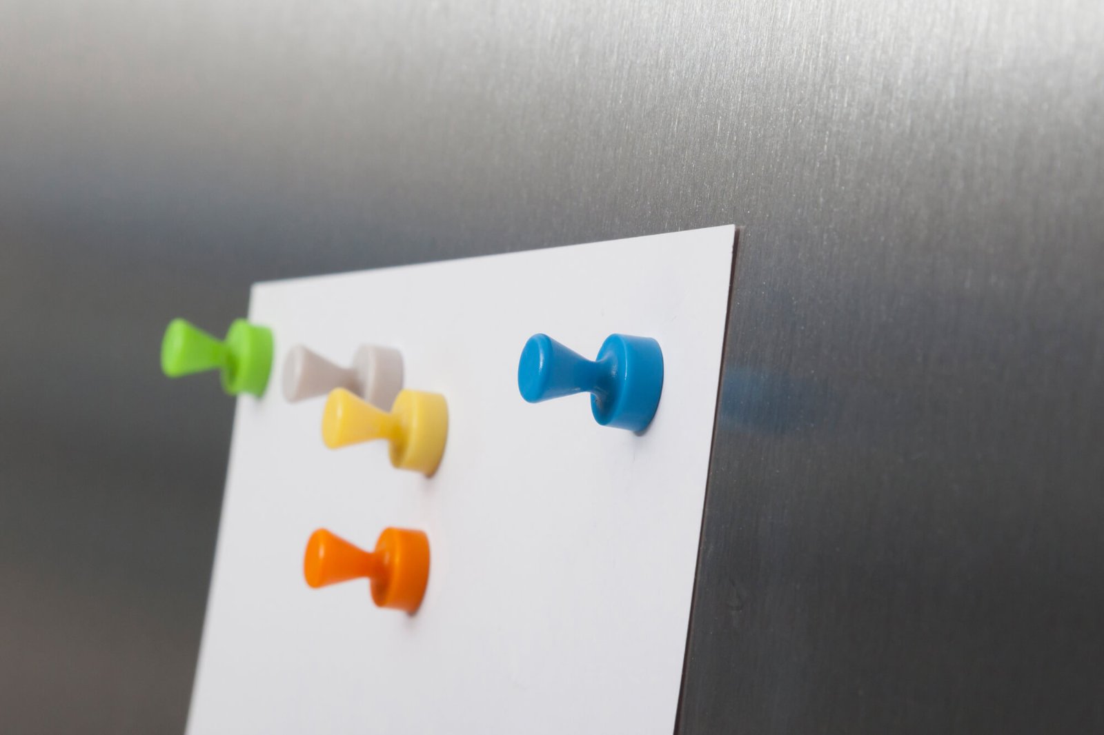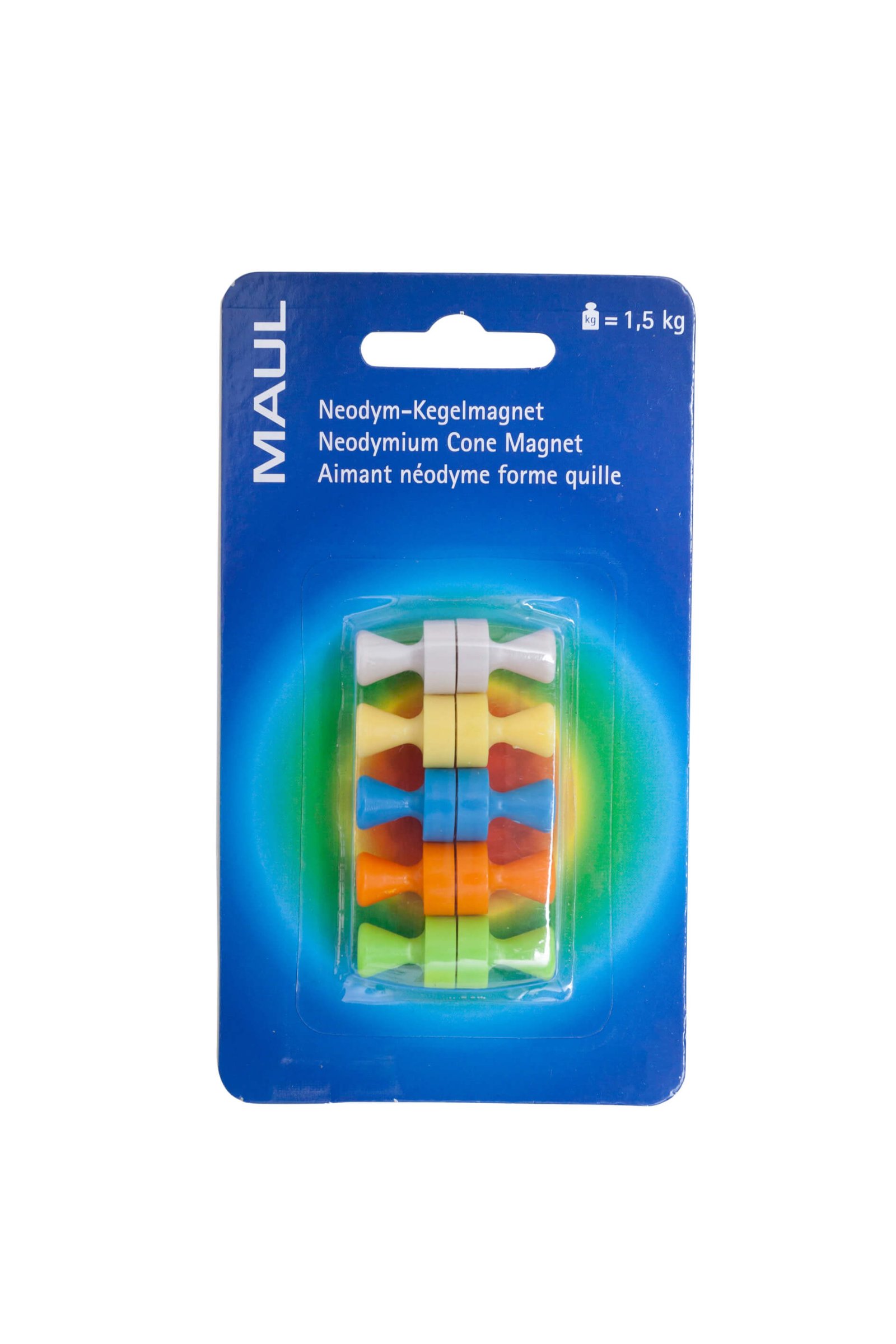 • Zestaw zawiera neodymowe pinezki w różnych kolorach: białym, żółtym, niebieskim, pomarańczowym, zielonym