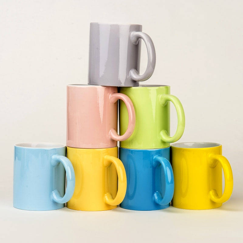 • Błyszczący kolorowy kubek do sublimacji z dużym, wygodnym uchem oraz białym środkiem