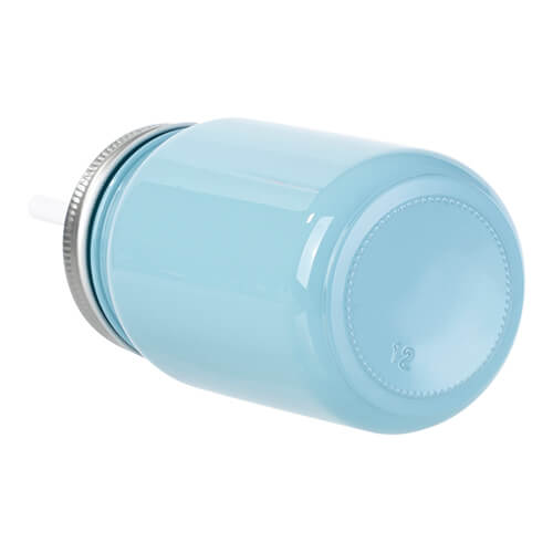 Niebieski szklany kubek Mason Jar do sublimacji z metalową zakrętką i słomką