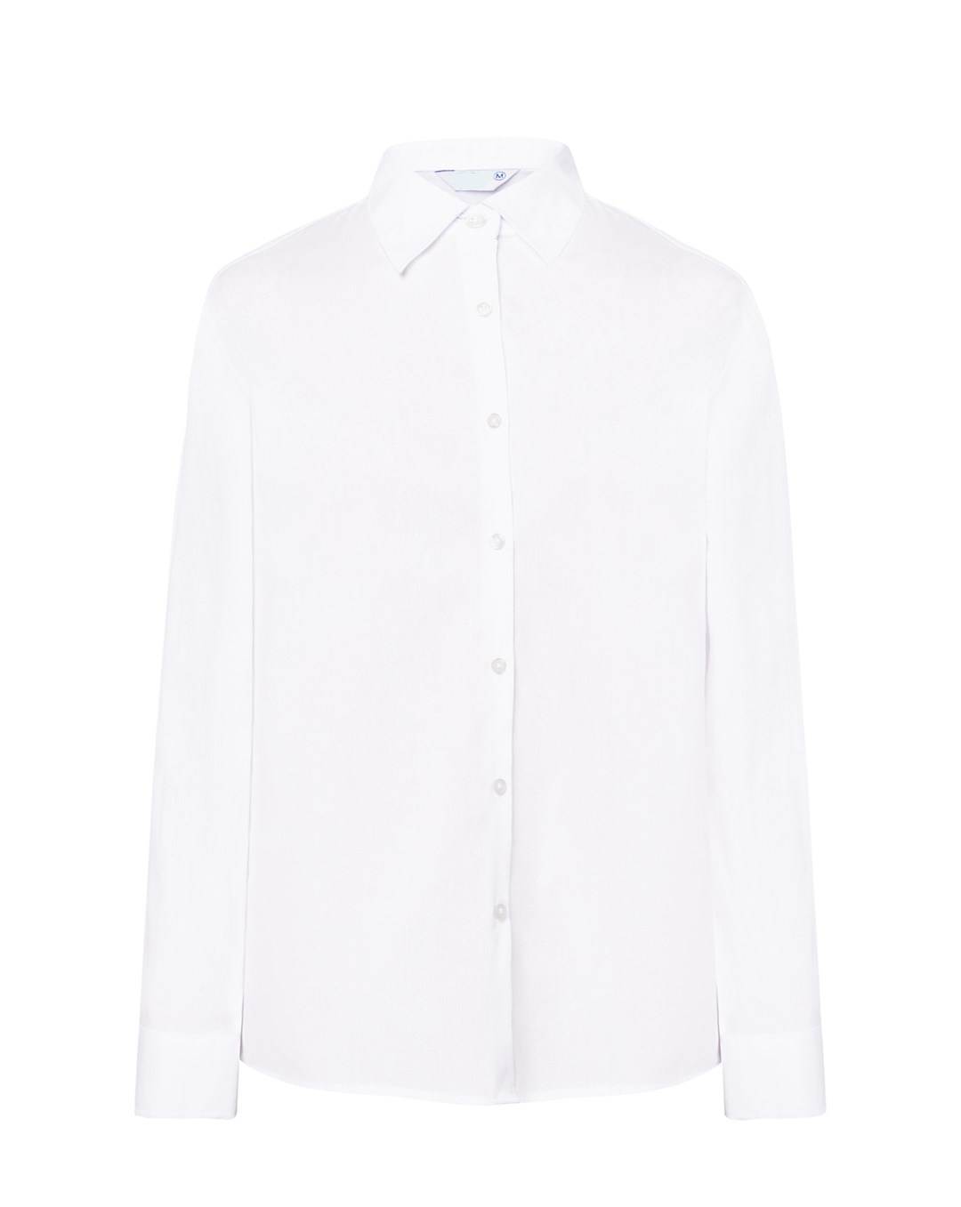 Koszula damska typu casual o wyprofilowanym kroju. Elegancka koszula damska do pracy to ważny element odzieży firmowej. Biznesowa koszula z logo idealnie sprawdzi się w pracy w różnego rodzaju instytucjach, urzędach, biurach, firmach, bankach i hotelach oraz restauracjach. Klasyczna koszula firmowa jest wygodna, dobrze układa się na wielu sylwetkach i jest dostępna w wielu rozmiarach. Koszule firmowe można znakować haftem lub stosując metodę termotransferu.