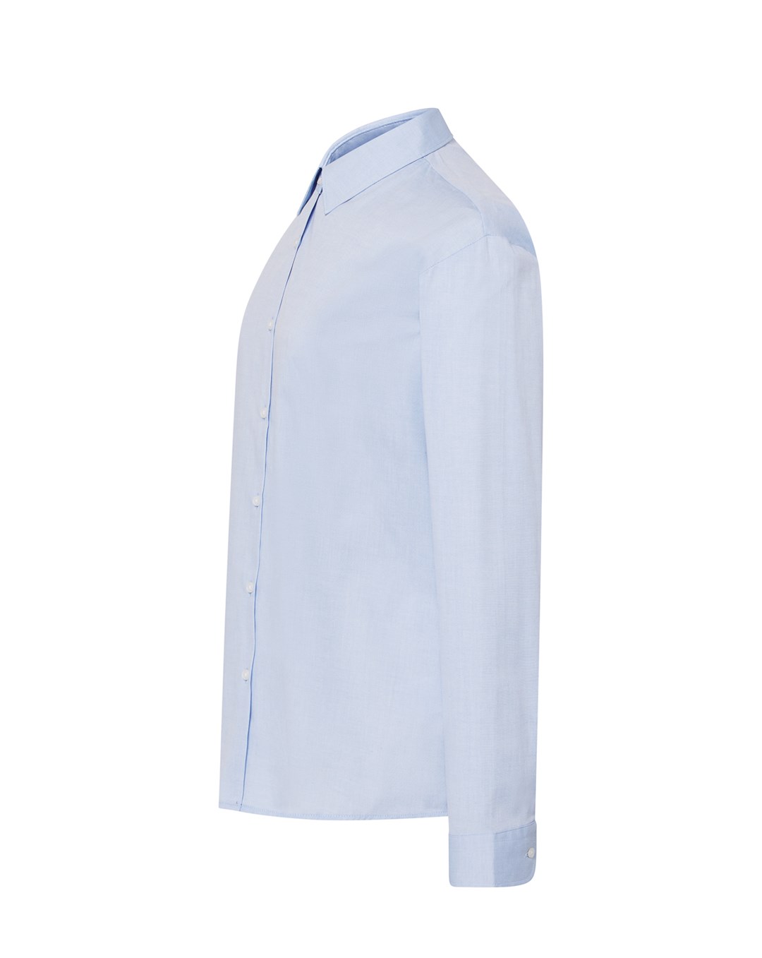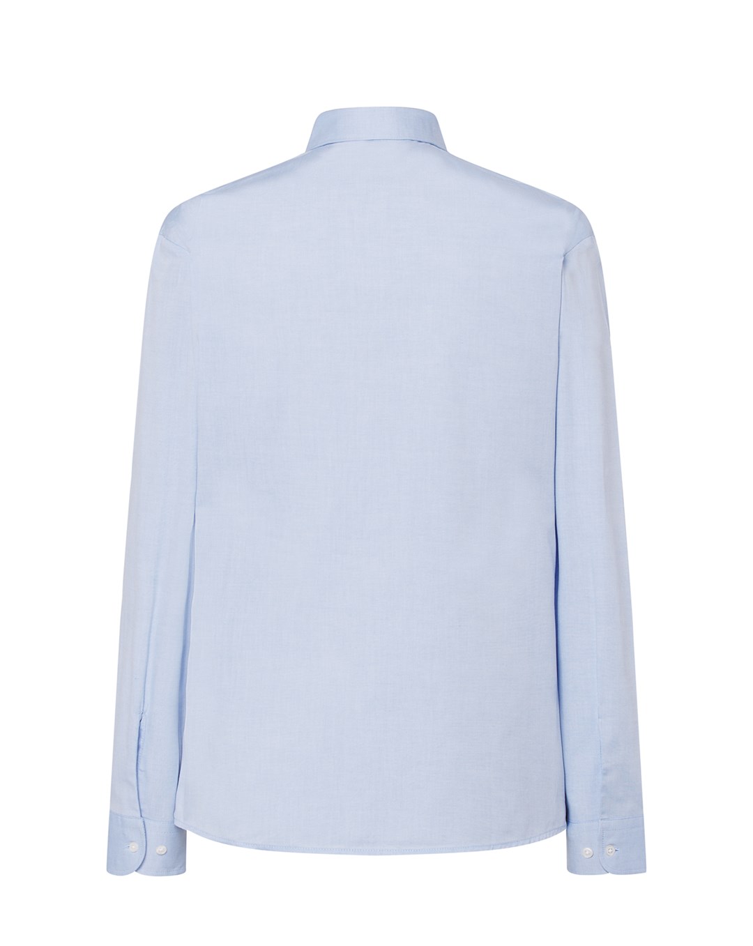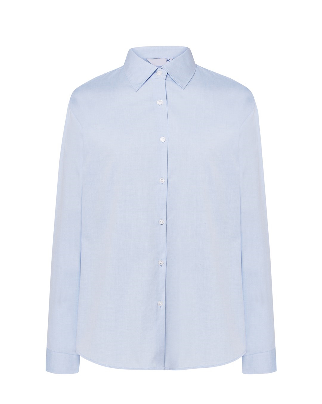 Koszula damska typu casual o wyprofilowanym kroju. Elegancka koszula damska do pracy to ważny element odzieży firmowej. Biznesowa koszula z logo idealnie sprawdzi się w pracy w różnego rodzaju instytucjach, urzędach, biurach, firmach, bankach i hotelach oraz restauracjach. Klasyczna koszula firmowa jest wygodna, dobrze układa się na wielu sylwetkach i jest dostępna w wielu rozmiarach. Koszule firmowe można znakować haftem lub stosując metodę termotransferu.