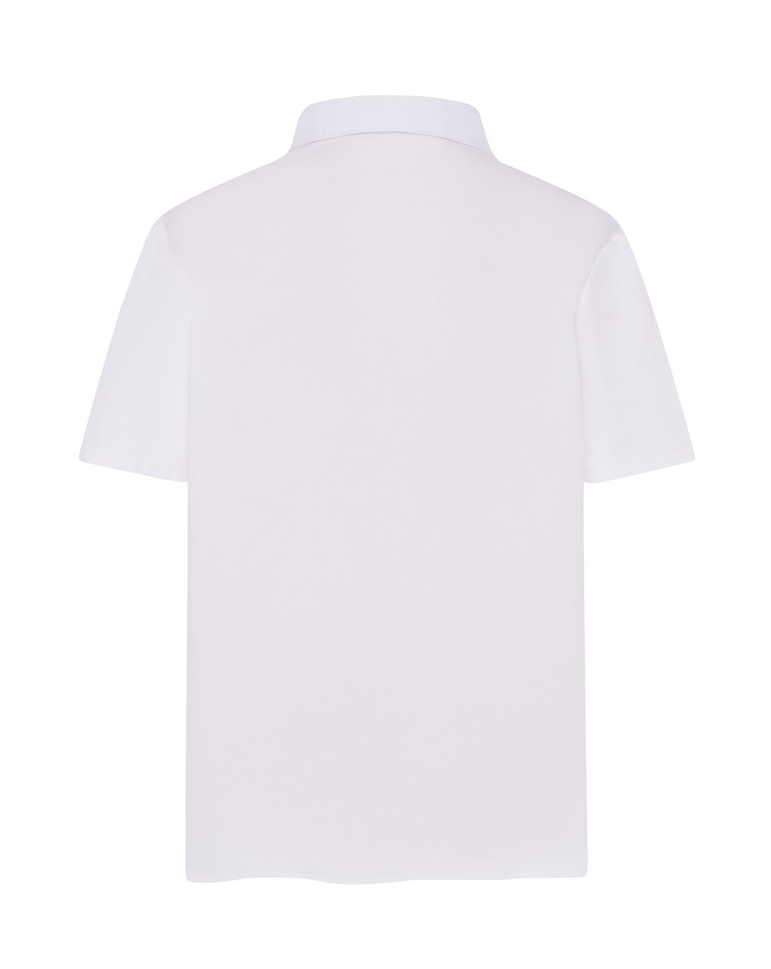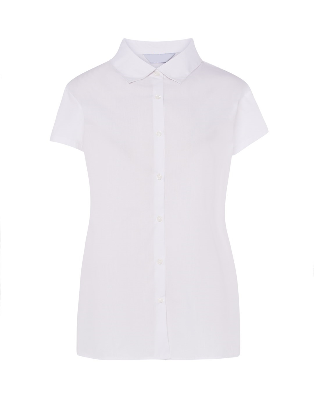 Biała koszula firmowa damska z krótkim rękawem, do personalizacji. Koszula dopasowana do sylwetki, taliowana.