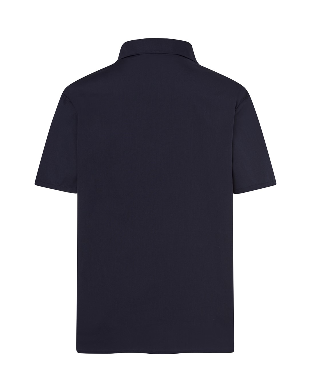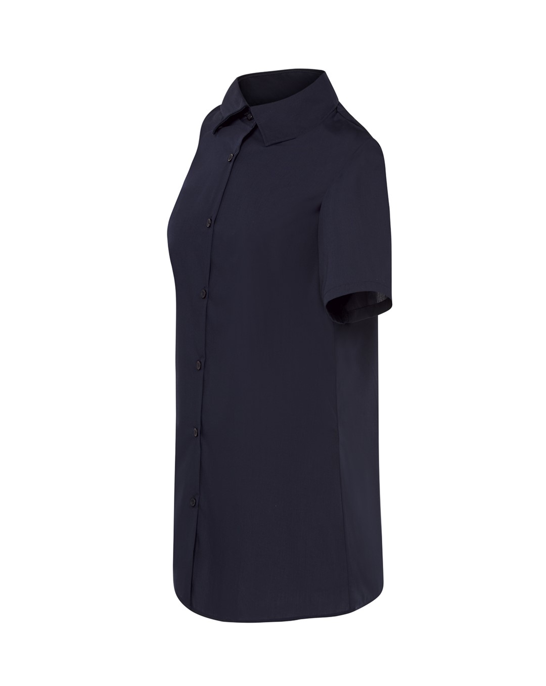 Granatowa koszula firmowa damska z krótkim rękawem, do personalizacji. Koszula dopasowana do sylwetki, taliowana.