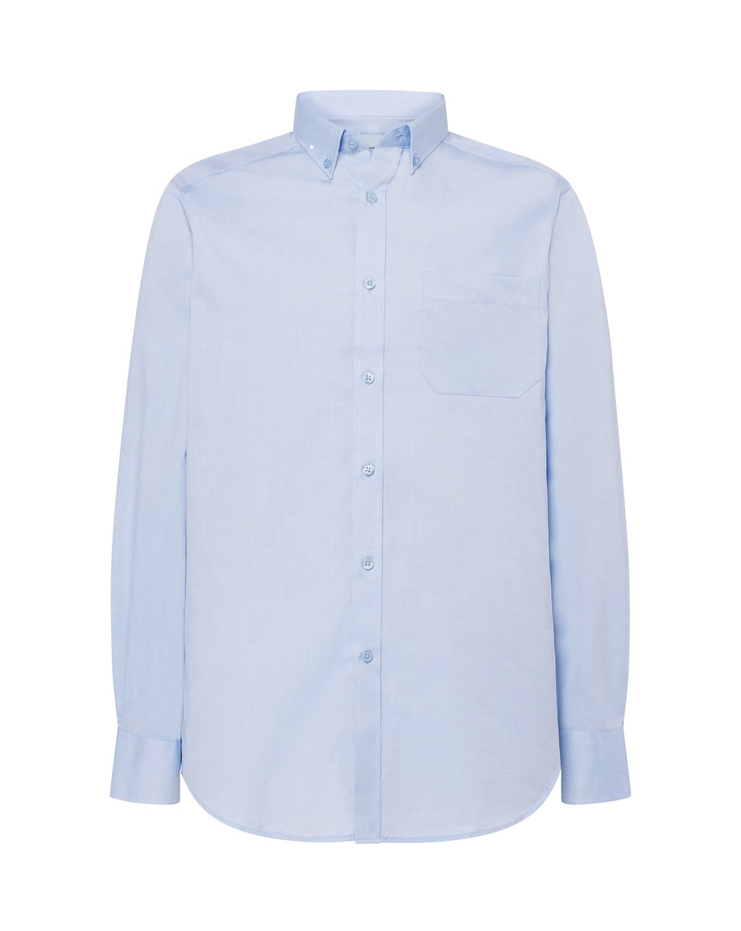 Koszula męska typu casual o swobodnym kroju. Elegancka koszula męska do pracy to ważny element odzieży firmowej. Biznesowa koszula z logo idealnie sprawdzi się w pracy w różnego rodzaju instytucjach, urzędach, biurach, firmach, bankach i hotelach oraz restauracjach. Klasyczna koszula firmowa jest wygodna, dobrze układa się na wielu sylwetkach i jest dostępna w wielu rozmiarach. Koszule firmowe można znakować haftem lub stosując metodę termotransferu.