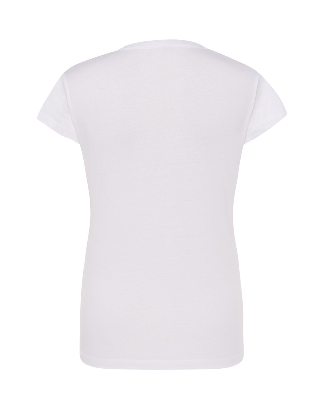 • Damskie t-shirty do naniesienia dowolnych nadruków posiadają podwójne szwy na ramionach, ściągacz wzmocniony lycrą oraz taśmę wzmacniającą; brak szwów bocznych.