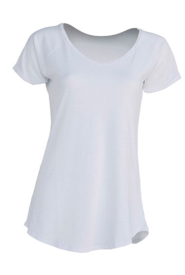 • Gładka koszulka damska z dekoltem w kształcie litery V.