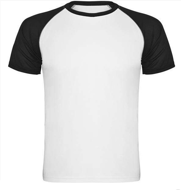 Biało - czarna koszulka do uprawiania sportu lub na eventy marketingowe.