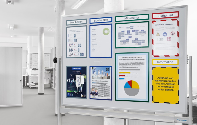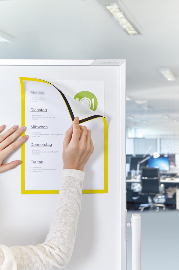Ramki magnetyczne na dokumenty składają się z grubej, transparentnej folii z kolorowym obwodem, która od spodniej części ma przymocowane magnesy. Wystarczy umieścić koszulkę magnetyczną na dowolnym metalowym podłożu, a następnie delikatnie ją odchylić i wsunąć plakat lub ogłoszenie. Matowa przezroczysta folia, oprócz podtrzymywania arkusza, pełni też funkcję ochronną - zabezpiecza umieszczony dokument przed zabrudzeniem. W odróżnieniu od niepraktycznych ramek samoprzylepnych, magnetyczne kieszenie można wielokrotnie usuwać i przytwierdzać na nowe miejsce, pozostawiając przedmiot w nienaruszonym stanie.