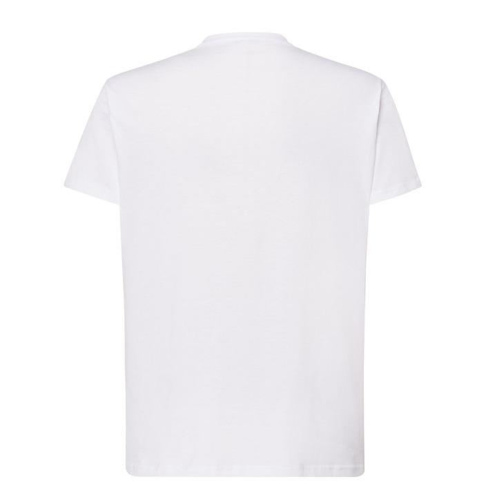 • Męski T-shirt do naniesienia dowolnych nadruków posiada taśmę wzmacniającą od ramienia do ramienia.