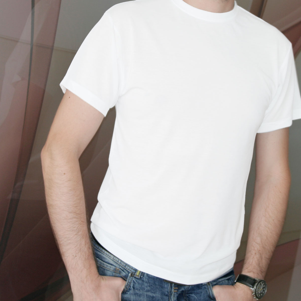 • Męski t-shirt do naniesienia dowolnych nadruków posiada podwójne szwy na ramionach, a nie posiada szwów bocznych.