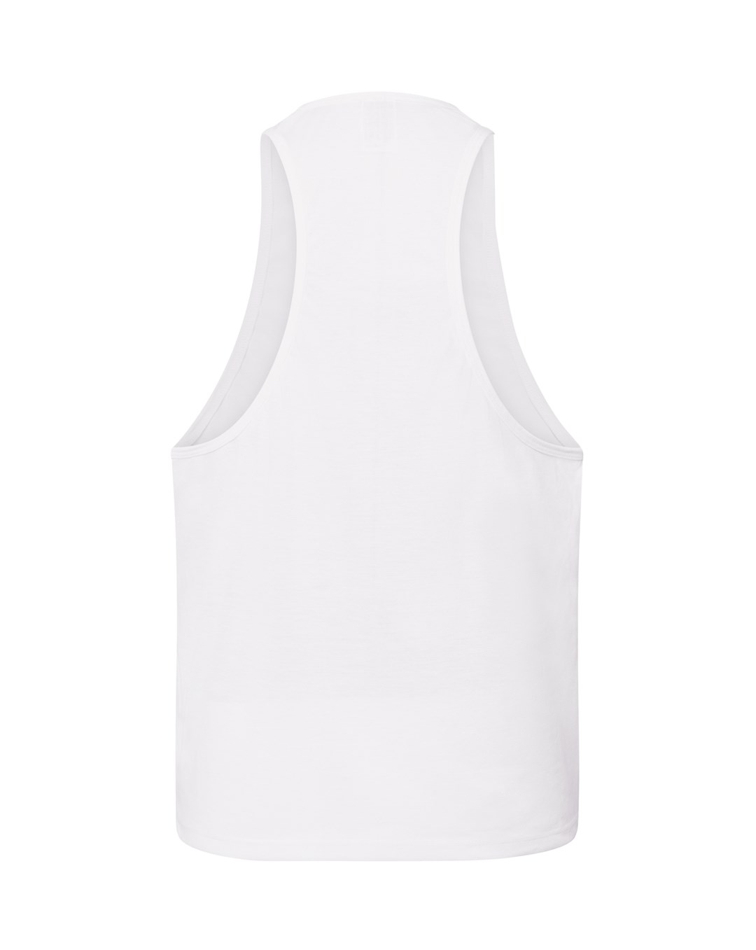 Biała koszulka uniwersalna (unisex), bez rękawków, o kroju bokserskim