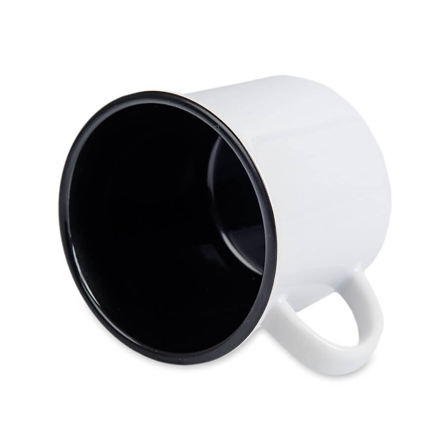Kubek vintage z czarnym wnętrzem przypomina do złudzenia kubek metalowy.